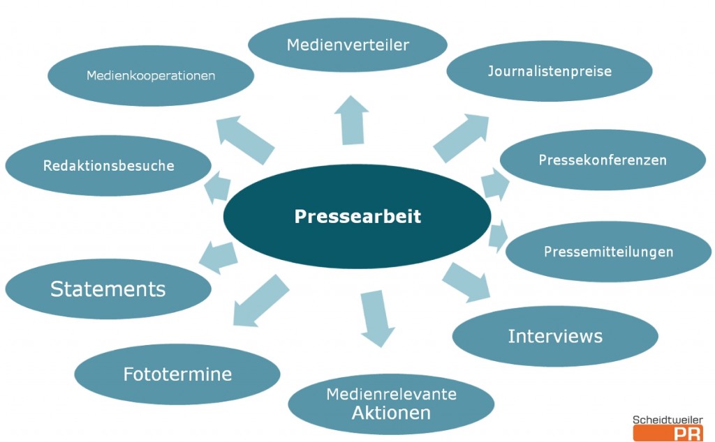 Damit erreicht Ihre Botschaft eine höhere Glaubwürdigkeit. Dieser Kanal spricht nicht die Kunden, Interessenten und Stakeholder direkt an. Sie vermittelt Informationen an Journalisten und Redakteure von Print, Hörfunk und TV. Diese dienen damit als Multplikatoren für Ihre Botschaften.
