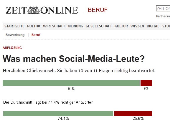 Etwas Witziges zum Feierabend: Bei Google+ wurde ich gerade auf dieses Quiz bei Zeit Online aufmerksam: Was machen Social-Media-Leute?